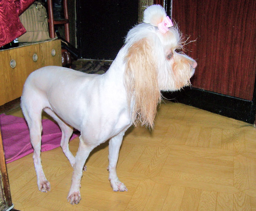 Первый день было забавно, пока Мили не прочухала, что к чему))) Особенно первый момент, когда её вынесли - такую лысую, с развевающимися ушами и бантиком розовым :-X Была радоссная встреча и прыганье до потолка (ещё бы - после перенесённой экзекуции))) Поймали радостные восхищённые взгляды прохожих при выходе из парикмахерской. Ещё бы, когда лает во все стороны блондинистое чудо с модной прычоской и розовым бантиком - это "очень даже мило". А когда лохматый комок шерсти - "уберите собаку!" :-7 Вывод - невоспитанное жывотное обязанно хорошо выглядеть)))