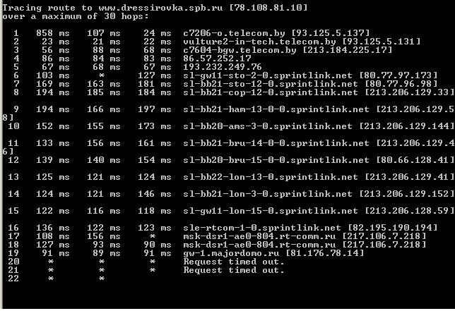 Вот вчера вечером был обрыв опять. Лог не сохранила, :-)~ но обрыв идёт на уровне каких-то московских узлов. Так что вряд ли провайдер.